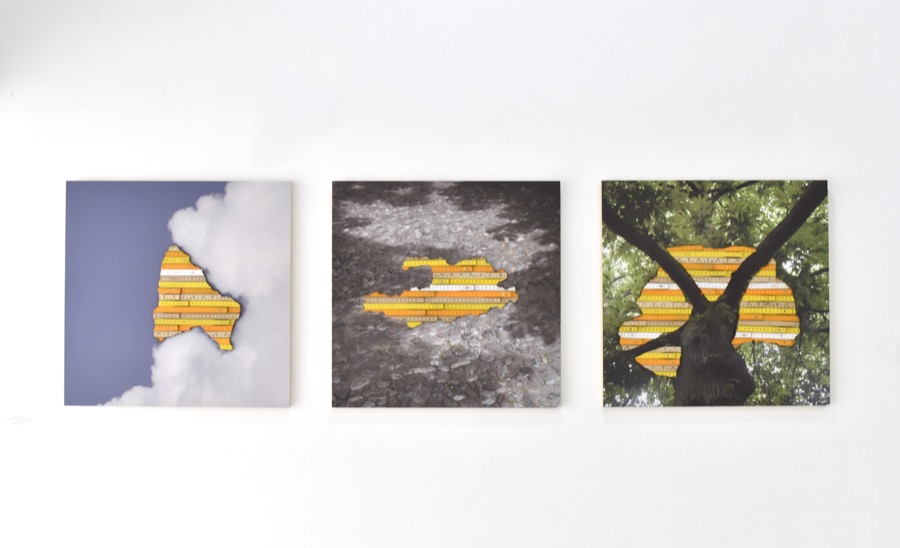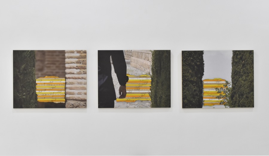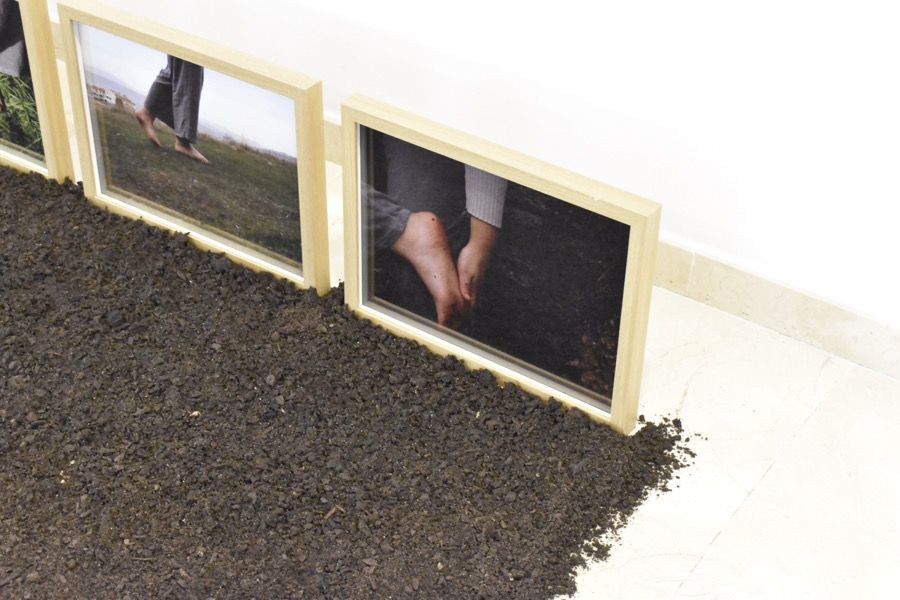 Documentación de acción a través de fotografías impresas instaladas en tierra