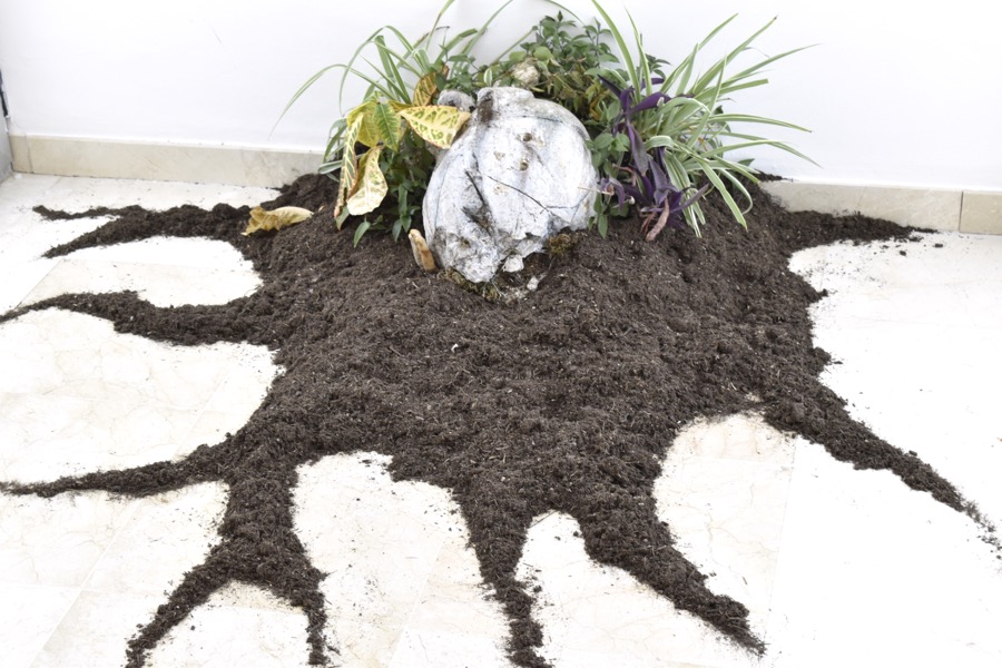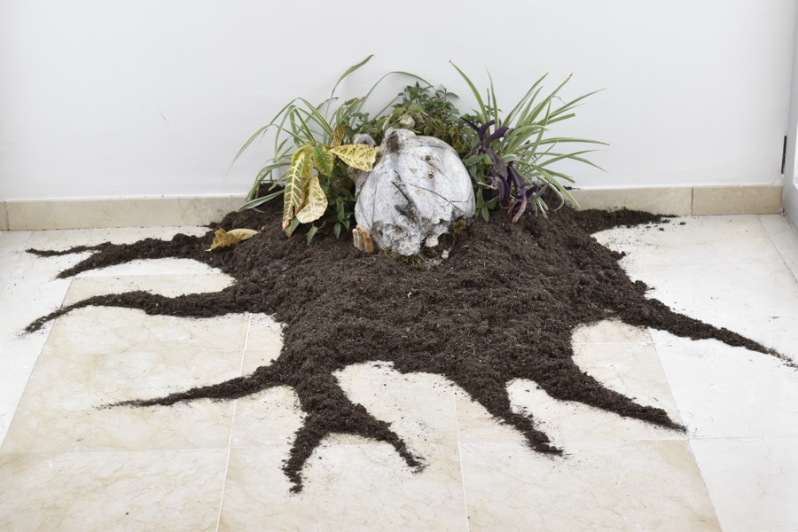 La instalación artística fusiona elementos visuales, naturales y conceptuales que interactúan con el espacio, explorando la relación entre ellos. A través del ensamblaje e impresión digital, la obra muestra cómo la naturaleza recupera sus espacios, desafiando su control, adaptándose y apropiándose de ellos.