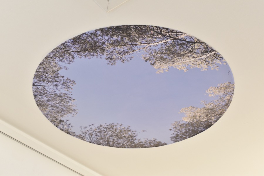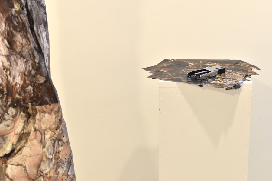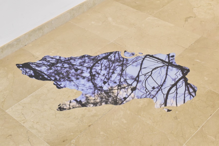 Encina, impresión sobre tela, cinta adhesiva, suelo de encinar