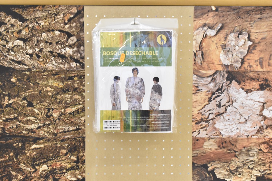 La obra invita a vestir el bosque, mimetizarse con el árbol, poniendo a la vez en evidencia las consecuencias de las acciones humanas sobre el entorno natural. Se explora la sátira, lo absurdo y la contradicción entre el anhelo de unión con la naturaleza y las dinámicas del consumismo; La obra se convierte en producto y residuo de esta nuestra Sociedad del Simulacro.