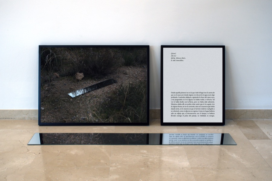 (Essere) fiume retoma la memoria topográfica como agente de activación del lugar en el entorno de La Zubia. La pieza evoca la reflexión sobre la pérdida y/o ausencia del agua como elemento que otorga la vida al paisaje y se convierte en su metáfora junto a la escritura, a través de la acción directa del artista en el medio natural.