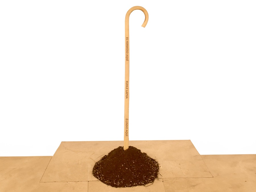 La acción se inspira en un famoso paseo del sociólogo Lucius Burckhardt junto al curador Hans Ulrich Obrist, en el que usaron un bastón inscrito con la frase “it’s beautiful here”. Al plantarlo en cualquier lugar, descubrían su belleza. Durante la deriva, utilizaremos un bastón con la misma frase escrita en las principales lenguas africanas. Al activarlo en la acción colectiva, se convertirá en un símbolo transcultural de conexión con la tierra y el paisaje, celebrando el compartir y el redescubrimiento.